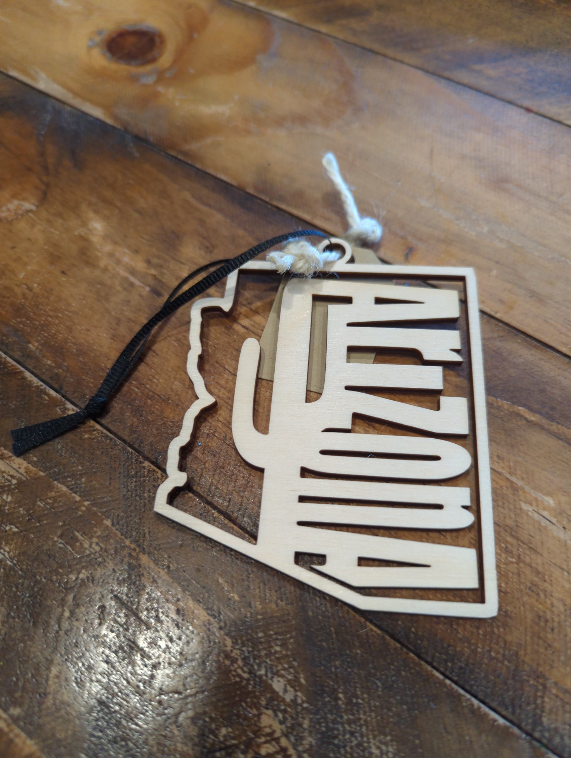 Arizona Themed Christmas ornaments made from Baltic birch These Arizona-themed ornaments are made from high-quality Baltic birch, ensuring long-lasting durability and an authentic, rustic feel.