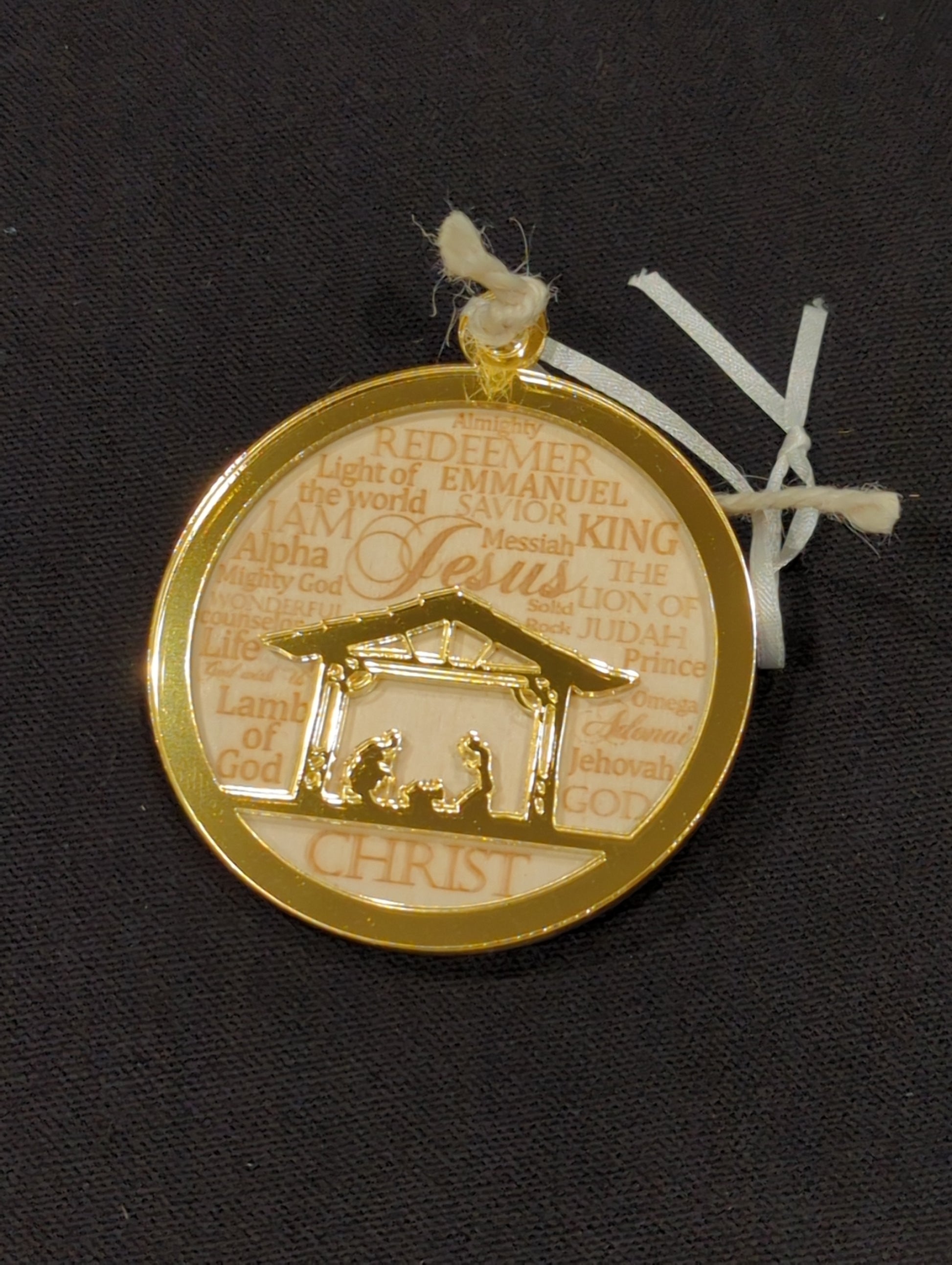 Experience the true meaning of Christmas with our "Jesus" 2 layer wood ornament. The top layer depicts a beautiful nativity scene, while the bottom layer lists all the names of Jesus. Truly a meaningful and unique addition to your holiday decor.